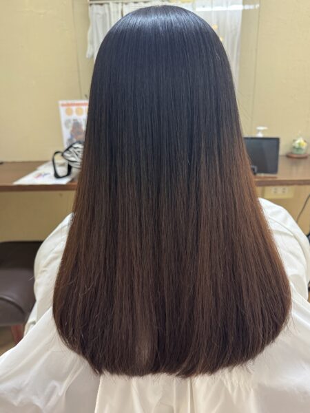 仕上がりは、指通りのいいサラサラ感と、細い髪でもぺたんとしない自然なツヤが出て、とてもきれいなストレートに。鏡を見た瞬間のお客様の笑顔が本当に嬉しかったです。