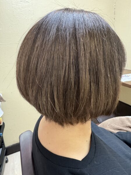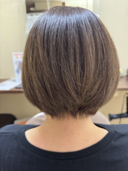 お写真のとおり、施術後は後ろ姿だけでもツヤがしっかり伝わる、ふんわり丸みのあるボブに仕上がっています。