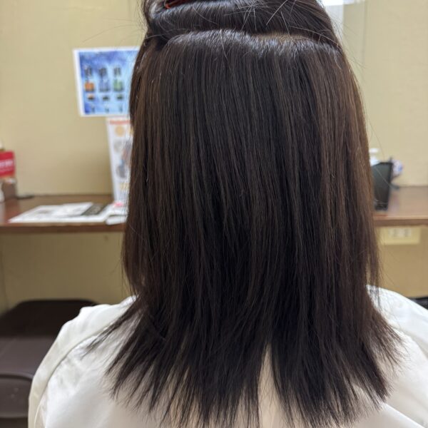 施術後は、根元から毛先までスッと指通りの良いストレートに。