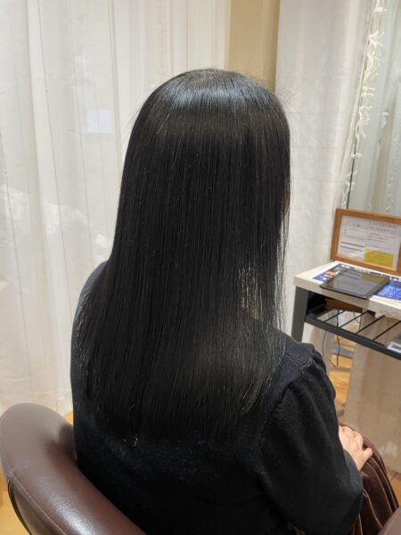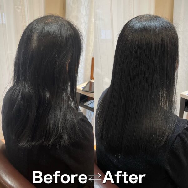 Afterは、根元からスッと真っ直ぐでツヤのある髪に。