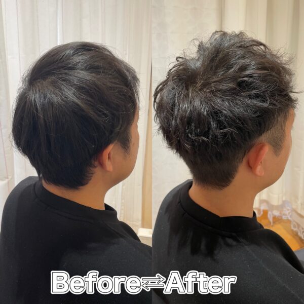 今回のメンズお客様はショートスタイルにパーマで動きをプラスしたいとのご要望。