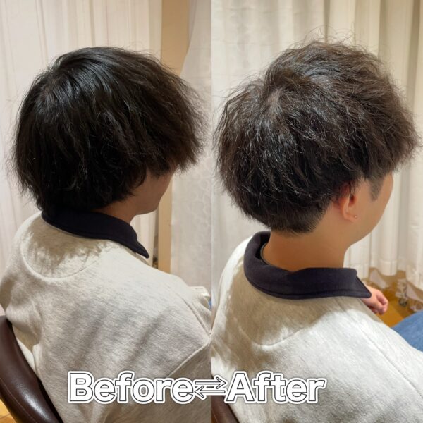 Afterはトップにしっかりと高さが生まれ、全体的に動きのある軽やかな印象へと変化しました。