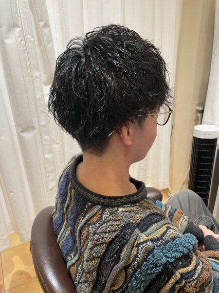 パーマをかけることで髪に空気が入り、根元がふわっと立ち上がるので、全体のシルエットもきれいに決まります。
