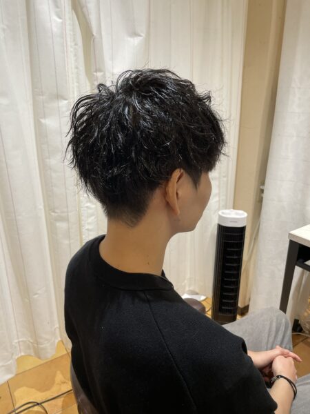 今回のスタイルは、トップからしっかりとボリュームを出しつつ、サイドや襟足をすっきりと刈り上げることで、バランスの良いシルエットに仕上げています。ボリュームが欲しい方、直毛でペタッとなりやすい方には特におすすめです。